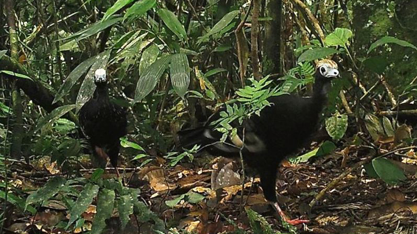 Pavas de garganta azul caminando en el Parque Nacional del Río Abiseo, ubicado en la región San Martín.