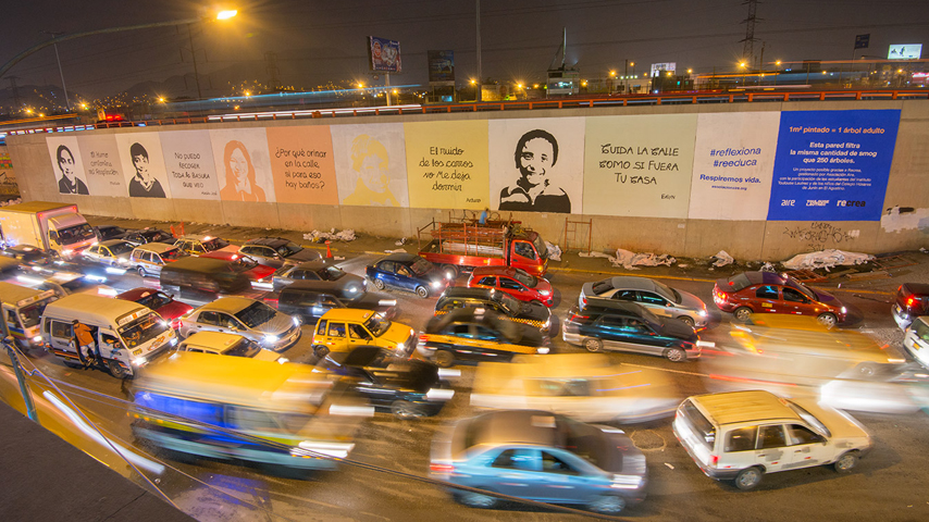 El arte y la tecnología son las herramientas que la Asociación Aire utiliza en los muros de Lima para impulsar el trabajo de jóvenes artistas y, al mismo tiempo, para limpiar el aire de la ciudad.