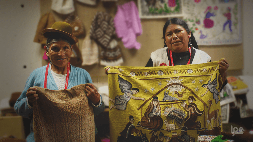 “Nuestros productos son elaborados a base de lana de oveja, fibra de alpaca y teñidos naturales que hacemos con plantas y yerbas. Mi mamá me enseñó este arte a la edad de los 6 años. Este arte es el sustento de mi hogar, no solo de este, sino de muchas familias del Perú. Nuestros bordados, a través de la iconografía, manifiestan las costumbres propias de nuestra población aymara” (Margarita Atencio - Asociación de Artesanos Pequeña Roma, Chucuito, Puno)