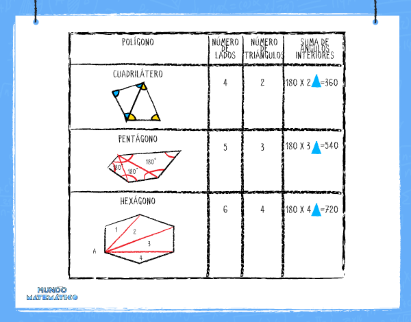 Si queremos hallar la medida de los ángulos interiores de cualquier polígono podemos hacerlo dividiéndolos en triángulos: